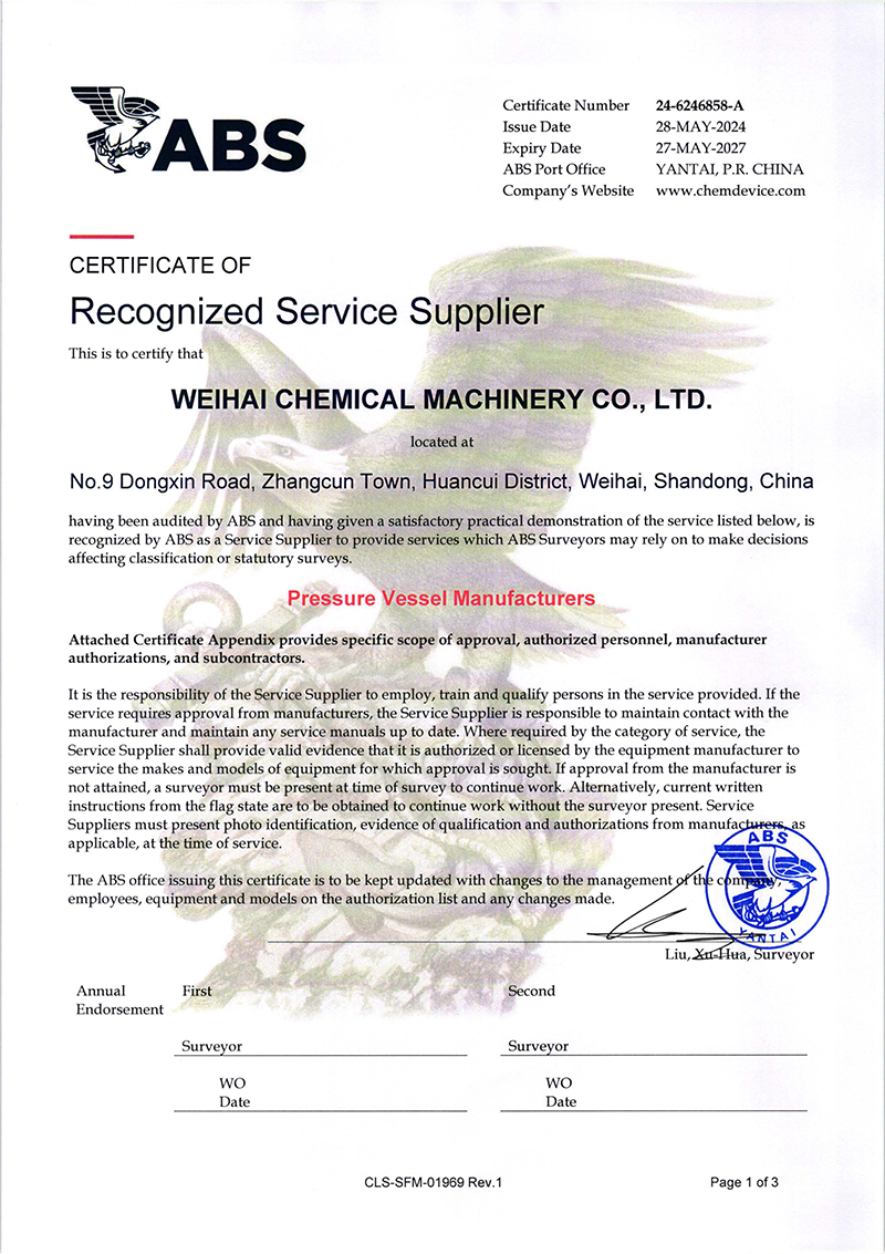 權(quán)威認(rèn)證!威?;瘷C(jī)壓力容器獲得美國(guó)船級(jí)社(ABS)資質(zhì)認(rèn)可