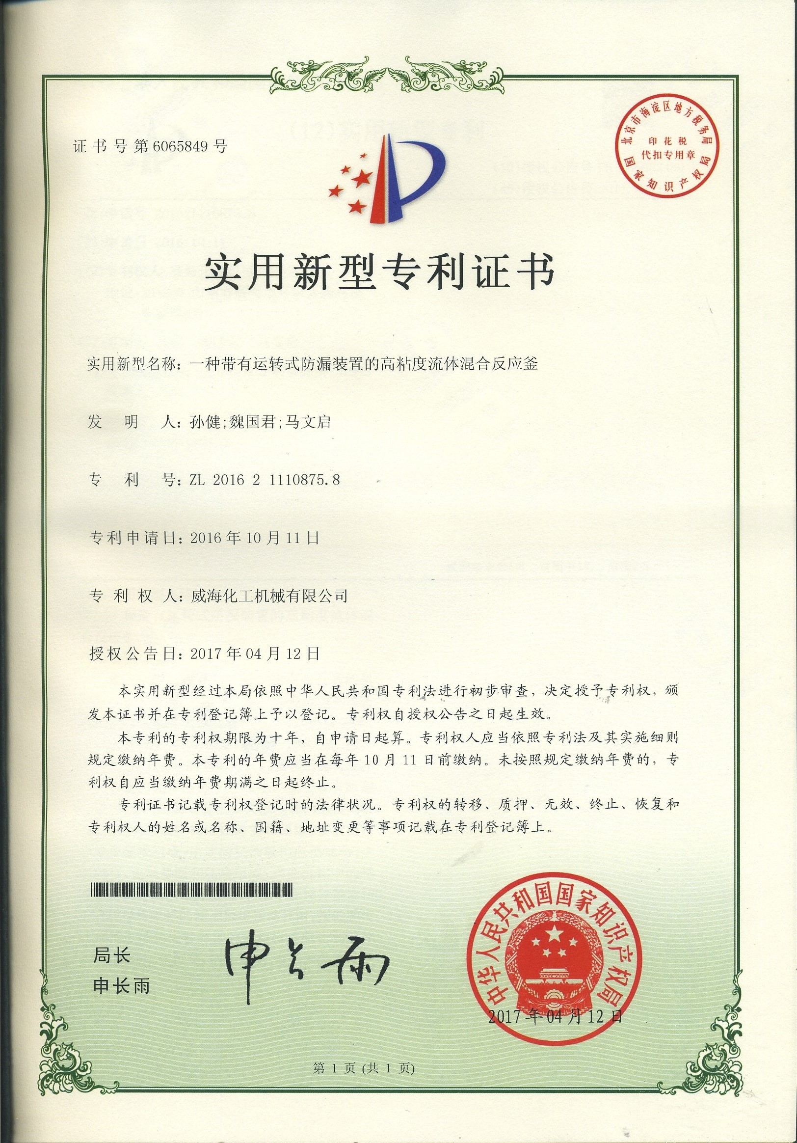 公司建有磁力驅(qū)動(dòng)測(cè)試試驗(yàn)室、攪拌模擬試驗(yàn)室、反應(yīng)釜流體混合攪拌重點(diǎn)實(shí)驗(yàn)室等,科研力量雄厚。截至2021年,公司共承擔(dān)近280項(xiàng)自主/合作開發(fā)任務(wù),先后承擔(dān)省級(jí)新產(chǎn)品開發(fā)任務(wù)25項(xiàng),其中23項(xiàng)產(chǎn)品已達(dá)到國(guó)內(nèi)水平。獲得各類省、市級(jí)技術(shù)創(chuàng)新獎(jiǎng)30余項(xiàng);參與起草、修訂標(biāo)準(zhǔn)共4項(xiàng),GB/T30098-2013實(shí)驗(yàn)室用磁力驅(qū)動(dòng)反應(yīng)釜標(biāo)準(zhǔn)、HG/T2648-2011磁力驅(qū)動(dòng)反應(yīng)釜標(biāo)準(zhǔn)、GB/T29254-2012實(shí)驗(yàn)室反應(yīng)釜用控制器標(biāo)準(zhǔn)、NB/T47002.1~47002.4-2019壓力容器用復(fù)合板;已獲得授權(quán)專利70項(xiàng),其中發(fā)明專利10項(xiàng),實(shí)用新型專利55項(xiàng),外觀專利5項(xiàng);擁有專有技術(shù)和核心技術(shù)30余項(xiàng)。